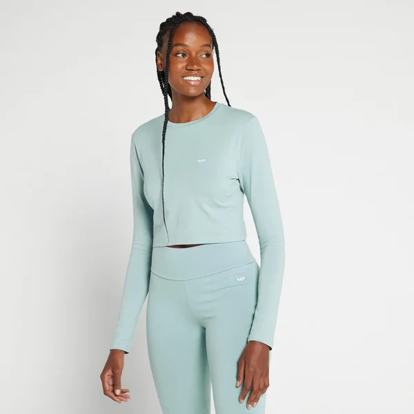 Een katoenen top met lange mouwen, ontworpen met veelzijdigheid in gedachten. Deze top is bij uitstek geschikt om in te sporten of om tijdens rustdagen te dragen. Hij is extra kort en voorzien van een geborduurd logo. Daarmee zit je altijd goed!