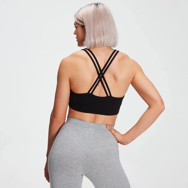 Bij deze flatteuze beha zijn we ook de details niet vergeten: hij is voorzien van gekruiste bandjes en een geborduurd logo.