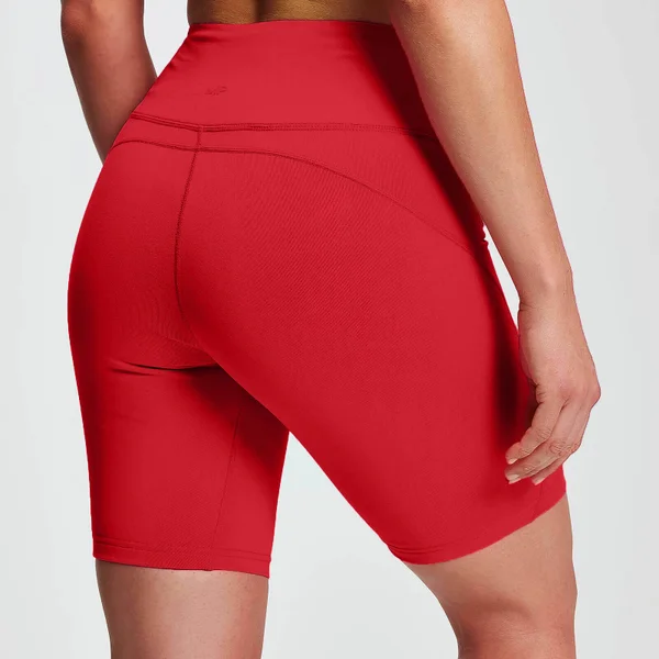Krijg de ondersteuning die je nodig hebt met deze fietsshort met hoge tailleband. De short valt net boven de knie voor maximale bewegingsvrijheid en de voorgevormde naden benadrukken jouw spieren: van opwarmsprints tot aan cooldown-stretchoefeningen.