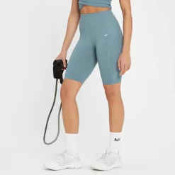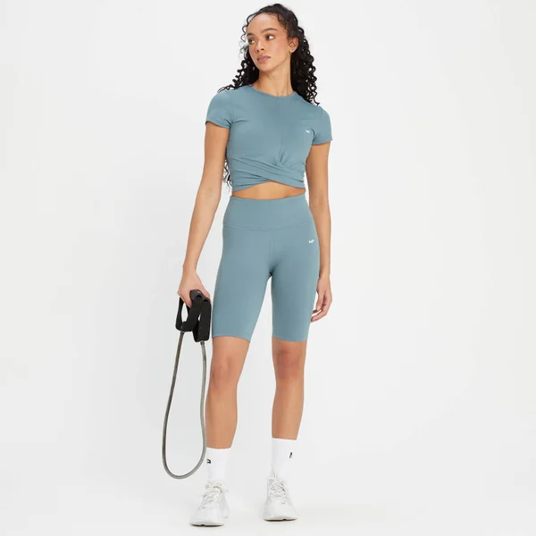 Krijg de ondersteuning die je nodig hebt met deze fietsshort met hoge tailleband. De short valt net boven de knie voor maximale bewegingsvrijheid en de voorgevormde naden benadrukken jouw spieren: van opwarmsprints tot aan cooldown-stretchoefeningen.