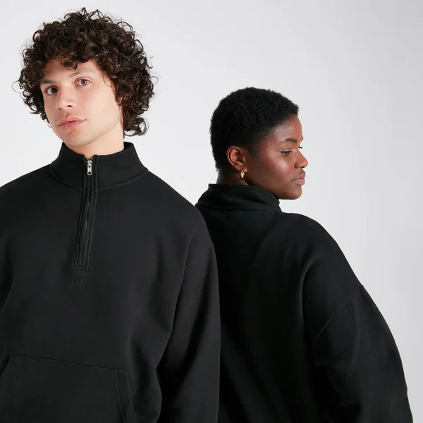 Een klassiek kledingstuk in stijlvolle oversized pasvorm. Dit sweatshirt met kwartrits is gemaakt om door iedereen gedragen te worden. Zacht aanvoelende stof met een kangoeroezak. Dit is een essentiële toevoeging aan jouw garderobe.