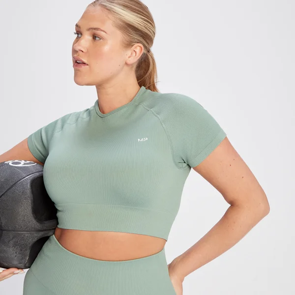 MP Tempo Croptop Van Ribstof Voor Dames – Salie-grijs