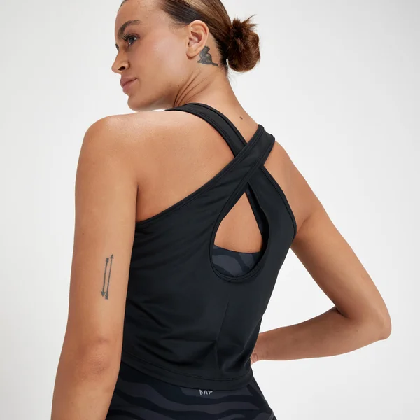 Een kort sporthemd dat ontworpen is met het oog op het leveren van optimale prestaties. Hij is gemaakt van zweetafvoerende stof, zodat je koel blijft tijdens intensieve sportsessies. Dankzij de gekruiste bandjes aan de achterkant en de flatterende, korte pasvorm is dit sporthemd zowel flatterend als functioneel.