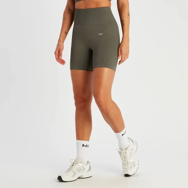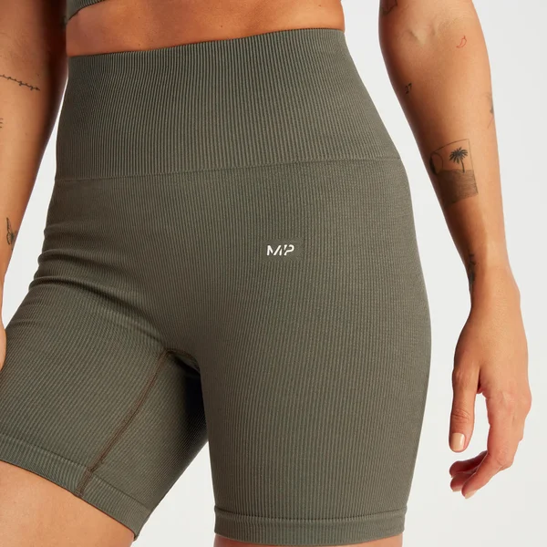 MP Tempo Naadloze Short Van Ribstof Voor Dames – Taupe-groen