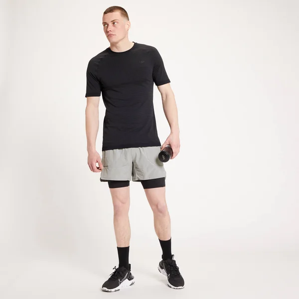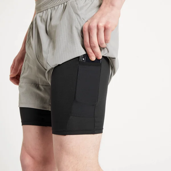 Eén korte broek met dubbel zoveel voordelen! Voeg deze 2-in-1 korte broek toen aan jouw sportschoolgarderobe en kijk nooit meer om. Deze korte broek is ontworpen voor mobiliteit met geweven stretchstof. Het kledingstuk is voorzien van geperforeerde panelen voor extra ventilatie zodat je langer koel blijft. Het binnenbroekje is voorzien van mesh panelen en een handig telefoonzakje.