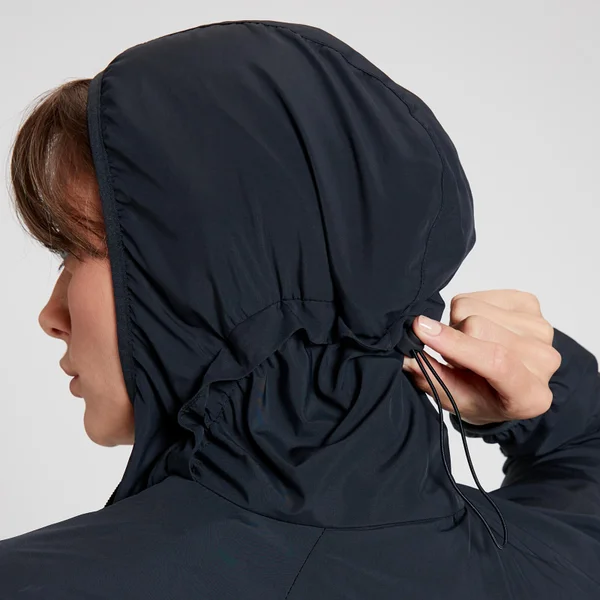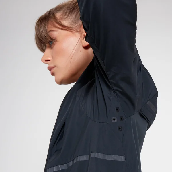 Dankzij de zakken met vochtwerende voering zijn waardevolle spullen veilig opgeborgen tijdens de regen. De verstelbare zoom en capuchon zorgen voor een pasvorm op maat en een comfortabelere run.