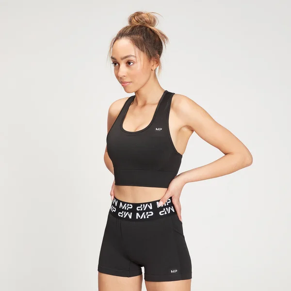 Hij heeft een superflatteus naadloos racerback-ontwerp en is gemaakt van zweetafvoerende en sneldrogende stof, waardoor hij geschikt is voor alle soorten training. Bovendien bieden de uitneembare cups de mogelijkheid om voor nog meer bedekking te zorgen.